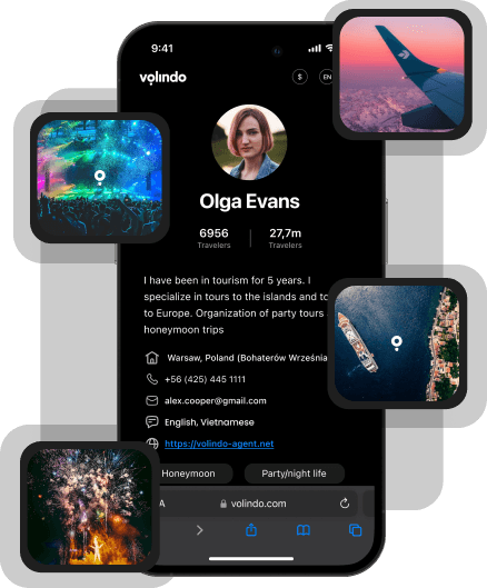 A seamless travel experience with comprehensive booking options Feature-rich profiles that eliminate the need for a separate website. Easy to use Travel CRM In Chat to simplified communication with travelers and 24/7 Volindos Back up on every trip.