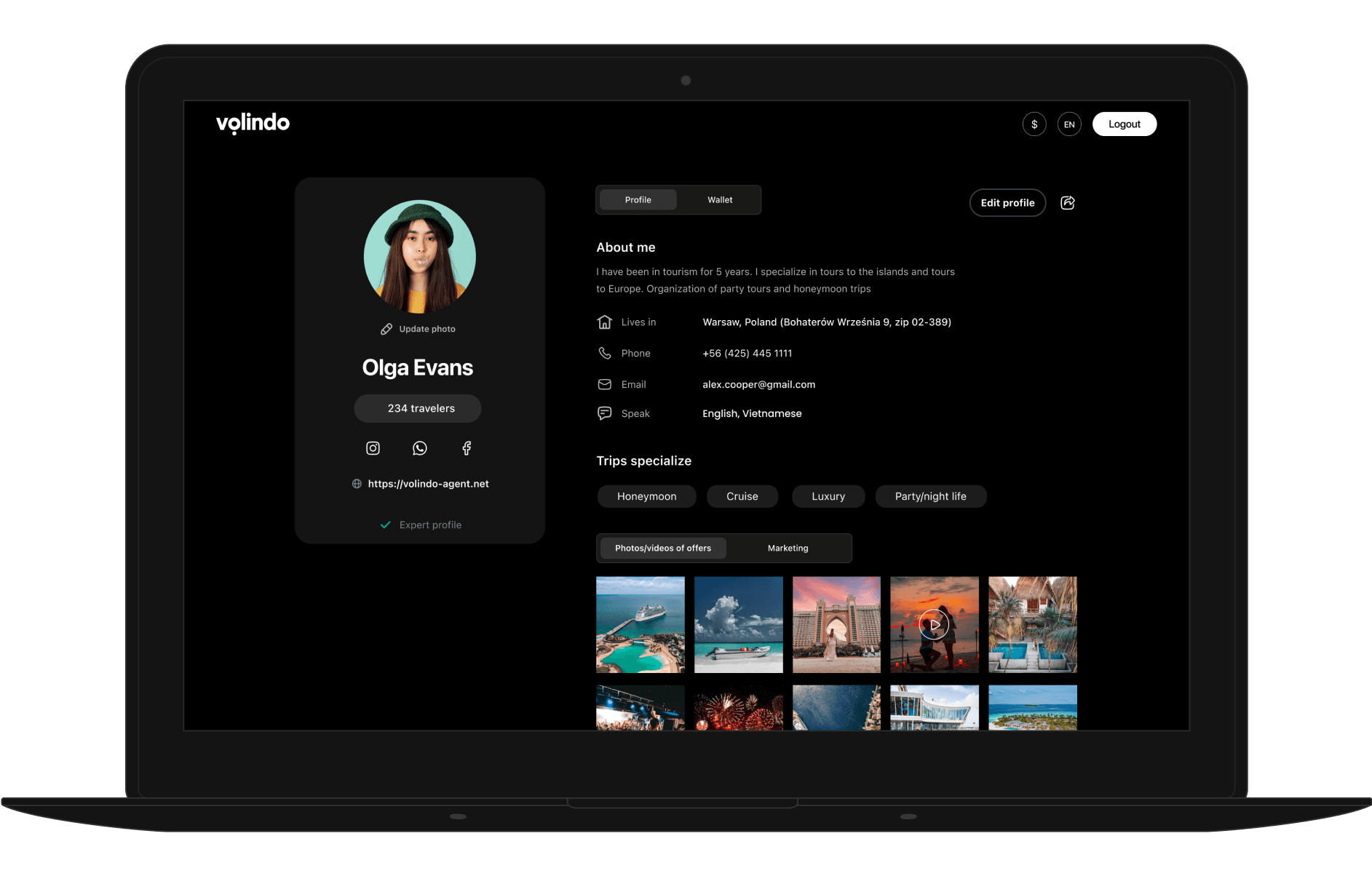 At Volindo, we understand that travel agents need to promote their business online, but building and maintaining a website can be a challenging and costly task. That's why we've created a unique feature called the Agent Profile to help you eliminate the need for a cumbersome and expensive website.